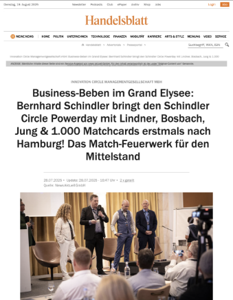 Klare Worte. Echte Begegnungen. Messbare Ergebnisse. Beim 3. SCHINDLER Circle Network Powerday in Stuttgart trafen sich 200 Unternehmerinnen und Unternehmer, um das zu tun, was vielen Formaten heute fehlt: Geschäft machen. […]