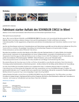 Am 24. März 2025 lud Berhard Schindler zum SCHINDLER CIRCLE Powerday in die österreichische Bundeshauptstadt Wien. Der Schindler Circle ist ein kleiner, exklusiver Business Circle nach US-amerikanischem Vorbild von Bill Gates und anderen Unternehmergrößen. […]