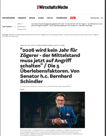 Grünwald, 20.8.2025 – Der Mittelstand kennt seinen Namen: Bernhard Schindler. Unternehmer, Investor, Netzwerker und Autor. Sein erstes Buch war ein Mega-Erfolg – über 4.000 Exemplare wurden verkauft und haben unzähligen Unternehmerinnen und Unternehmern neue Impulse gegeben, wie man trotz Krise Kunden gewinnt und sein Business neu positioniert.