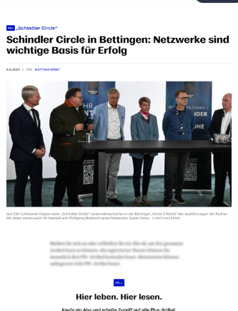 Über Veränderung reden können viele – doch nur wenige haben den Mut, sie wirklich zu leben. Im SCHINDLER Circle triffst du genau diese Unternehmer, die dich pushen, die mit dir gemeinsam durchstarten, die dir Türen öffnen und wo Visionen Realität und Worte zu Taten werden.